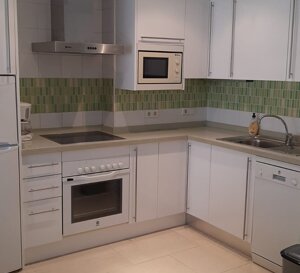Appartamento di 70 mq con vista giardino, camera matrimoniale, soggiorno con 2 divani letto e cucina completamente attrezzata, con forno elettrico, fuochi induzione, microonde, frigorifero, lavastoviglie, lavatrice, ferro da stiro, asciugacapelli, aria condizionata, TV e WiFi .