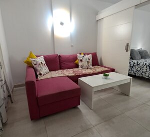 Sea View Studio Suite of 50 m², double bed, living room with a sofa bed, fully equipped kitchen, electric burners, fridge, microwave, washing machine, iron, hairdryer,